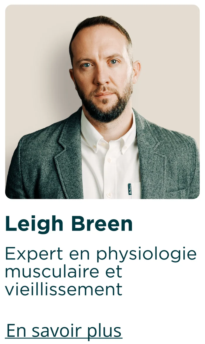 - Professeur Leigh Breen - Leigh est spécialisée dans la physiologie musculaire et le vieillissement. Elle nous aide à garder une longueur d'avance sur les suppléments qui favorisent la force et la mobilité à long terme.