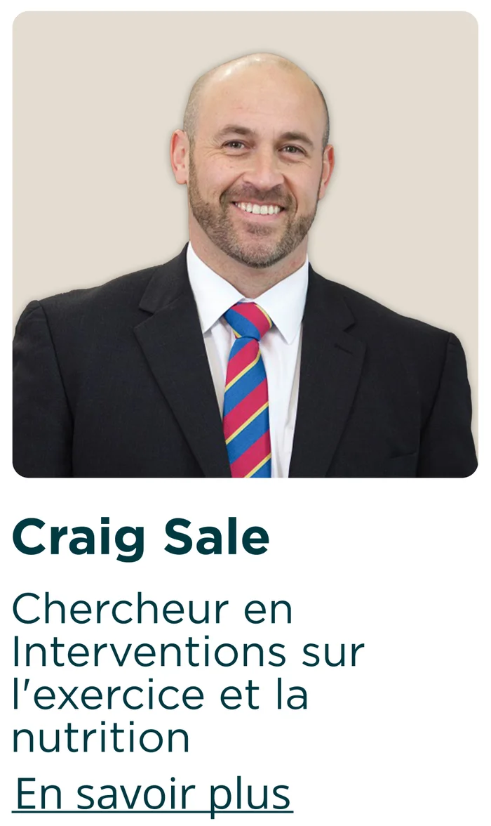 - Craig Sale - Un chercheur chevronné de l'Université métropolitaine de Manchester, qui possède une grande expérience des interventions en matière d'exercice physique et de nutrition.