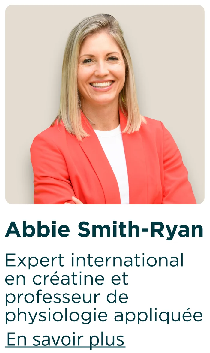 - Abbie Smith-Ryan, PhD - Experte internationale en matière de créatine, Abbie est directrice du laboratoire de physiologie appliquée de l'UNC Chapel Hill.