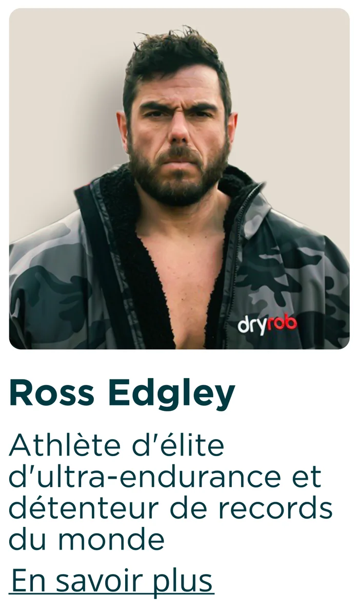 - Ross Edgley - Athlète d'ultra-endurance ayant établi un record du monde, Ross est devenu la première personne à parcourir à la nage toute la côte de la Grande-Bretagne, soit 2 000 miles en 157 jours.