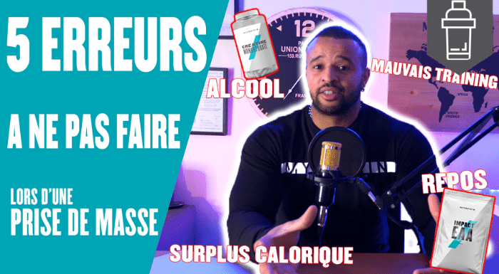 Introduction — 00:00 Augmenter les calories — 00:41 Tu es trop gras — 04:08 Programme non adapté — 05:45 Négliger la récupération — 09:46 Négliger les bons compléments — 11:56