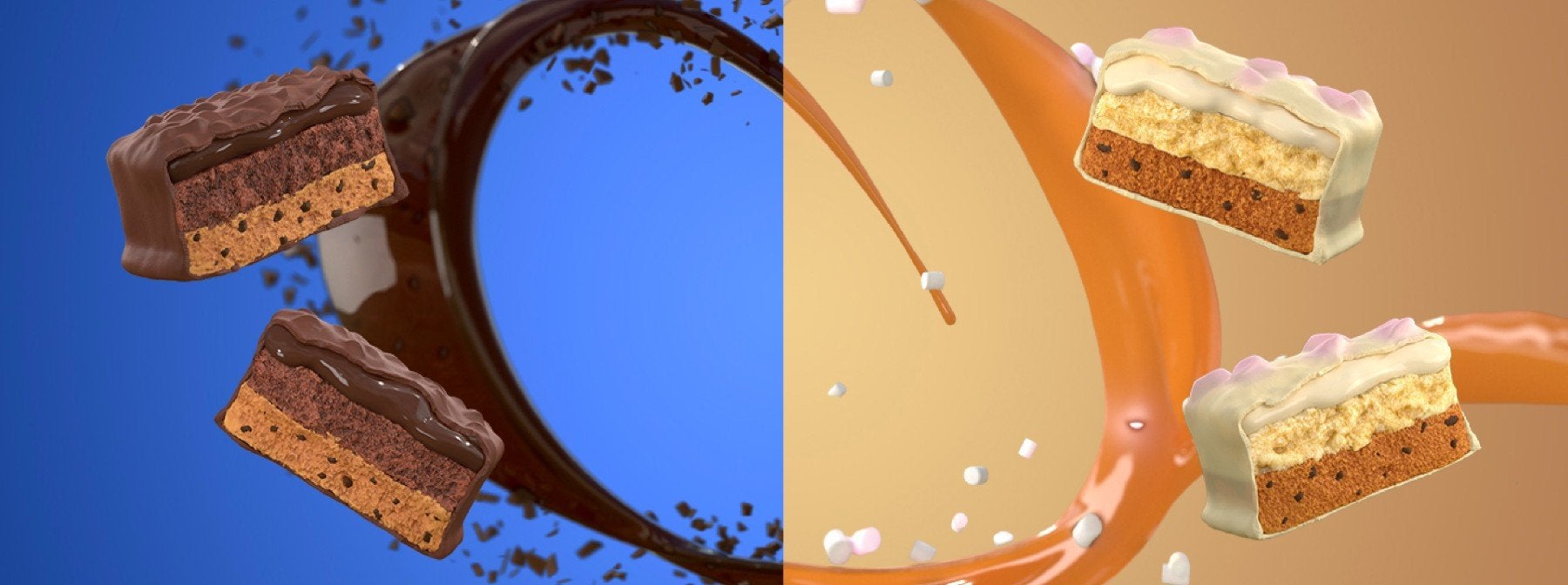 Faites fondre ensemble des guimauves et notre pâte à tartiner au chocolat protéiné pour faire un sandwich entre deux brownies à double pâte. Ce délice chocolaté à la guimauve vous apporte plus de 20 grammes de protéines, tout en ayant le goût d'un dessert digne d'un jour de triche.