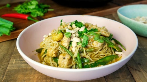 4) Égouttez les nouilles et ajoutez-les dans un grand bol à mélanger. Ajoutez ensuite la carotte, le chou, les oignons de printemps et les herbes fraîches et remuez bien jusqu'à ce que tout soit bien mélangé. Ajoutez la vinaigrette et remuez à nouveau pour que tout soit couvert.