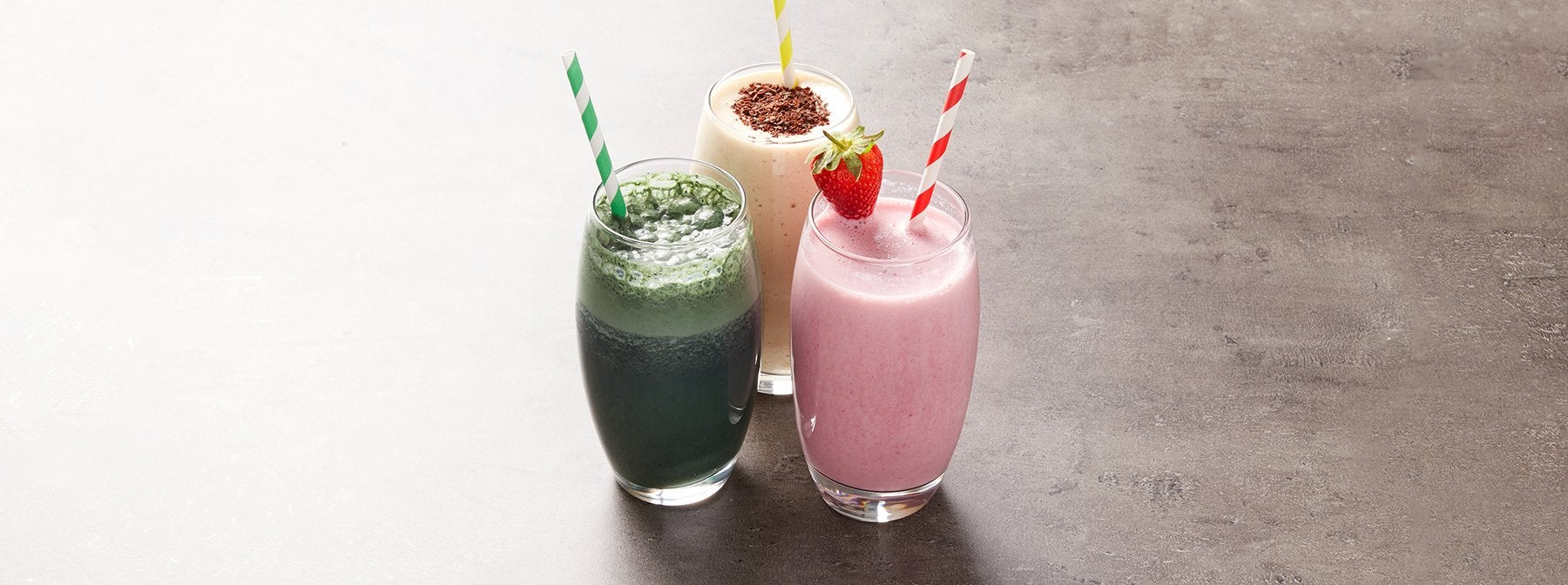 Et enfin, le smoothie à la fraise, qui contient notre délicieux Substitut de repas protéiné, un complément riche en protéines et en fibres, qui regorge de vitamines et de minéraux. Pour n'en citer que quelques-uns, il fournit des vitamines A, B6, B12, C, D, E et K, ainsi que du calcium, du magnésium, du fer, du zinc et du cuivre, le tout en une seule portion.