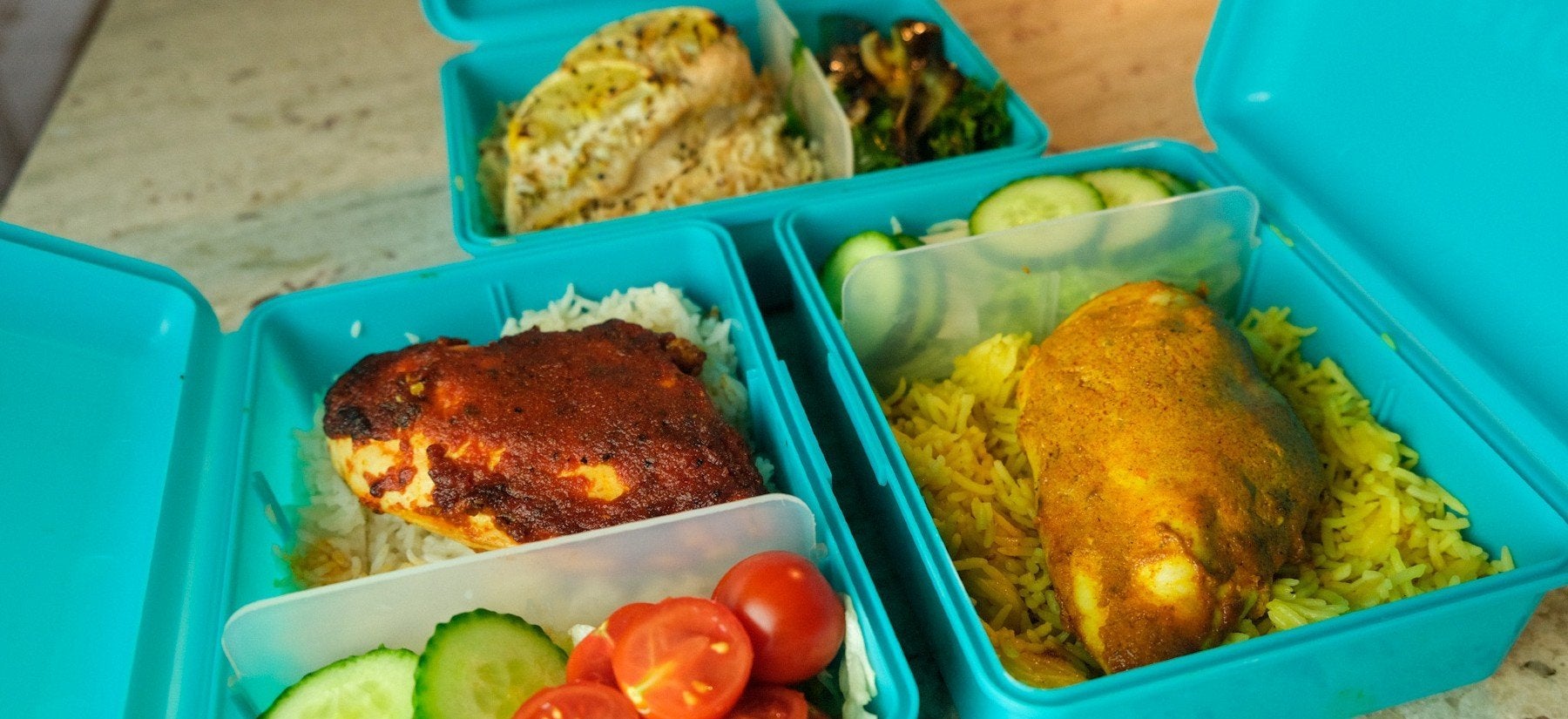 - Placez vos blancs de poulet dans un compartiment, avec 250 g de riz cuit et une salade ou un légume de votre choix.