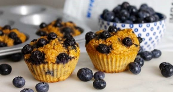 ? 1 cuillère de Myprotein Impact Whey Vanille? 1/2 tasse de citrouille en conserve (120g)? 3 c-à-s de blancs d’œufs? 1/4 de tasse de son d'avoine (40g)? 1/2 c-à-c de levure chimique? 1/2 c-à-c de cannelle? 1/2 tasse de myrtilles congelées (70g)? Édulcorant (optionnel)