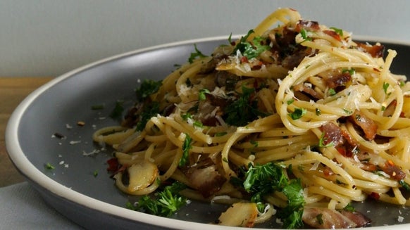 3) Une fois que tout est cuit, retirez le poulet du plat et ajoutez un peu d’eau bouillante au jus et à la sauce restée au fond. Mélangez pour obtenir une sauce que vous pourrez verser sur les pâtes et servez !