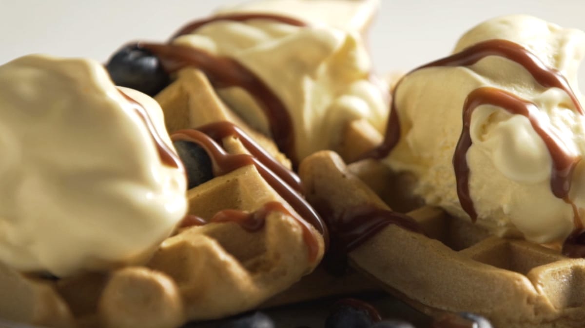 Pour réaliser cette recette vous aurez simplement besoin d’un moule à gaufres pour réaliser de belles gaufres et d’un peu d’huile de coco. En plus on vous propose de l’accompagner de glace protéinée afin de garantir un dessert des plus savoureux !