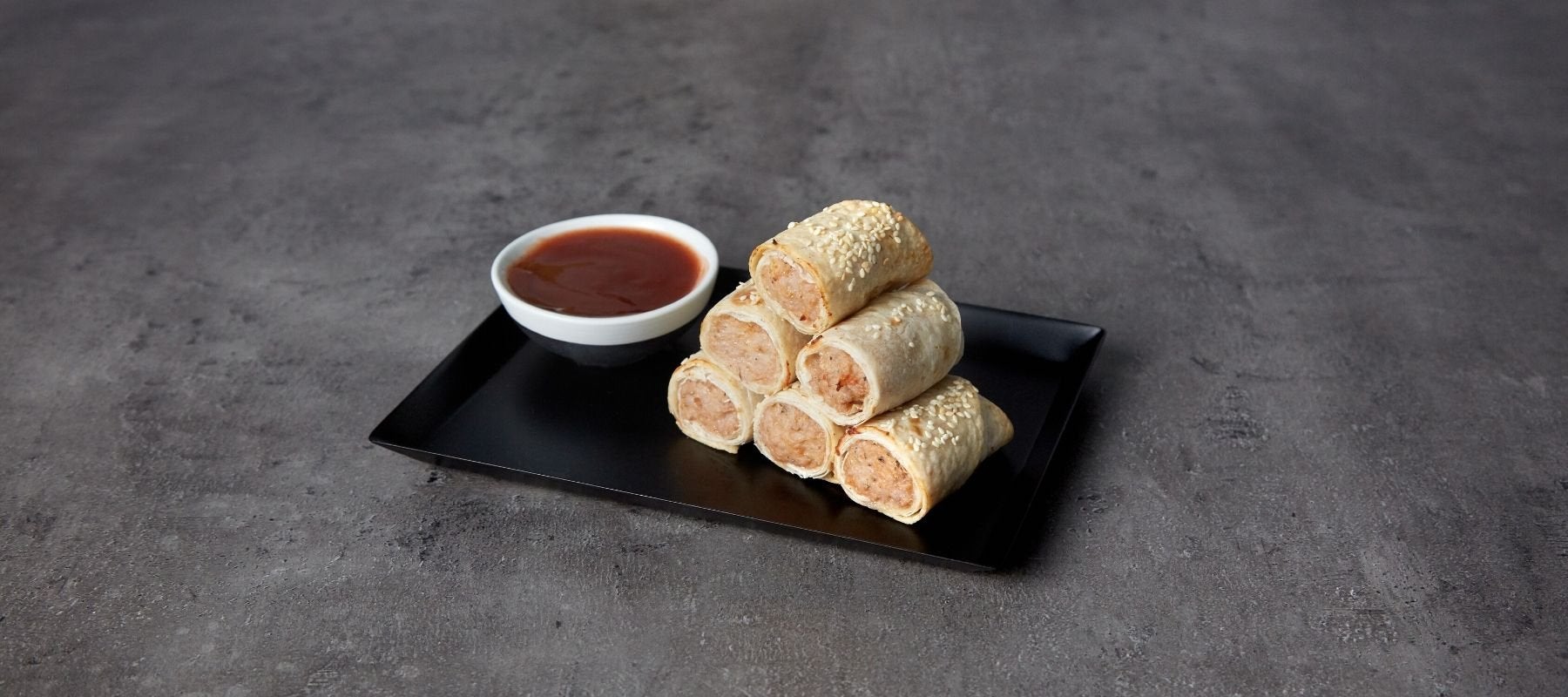 - Badigeonner chaque rouleau de saucisse de beurre fondu et saupoudrer de graines de sésame. Cuire ensuite au four pendant 20 minutes, jusqu'à ce que le wrap soit doré sur le contour.