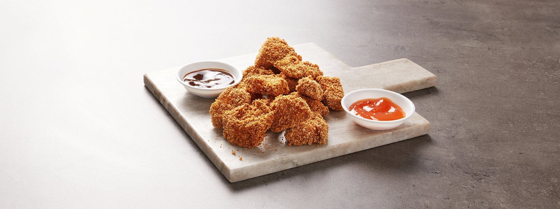 Oubliez la friture grasse, ces nuggets de poulet sont plus sains pour satisfaire vos envies sans faire dérailler votre travail acharné. De plus, ils se marient parfaitement à nos sauces, qui sont sans sucre, faibles en gras et seulement 5 calories par portion.