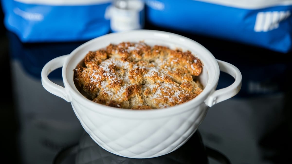 2 apples 1/2 pot of soy yogurt 30 g grated coconut 70 g d'Instant Oats 2 scoops of protein A few drops of vanilla flavdrop (optional)